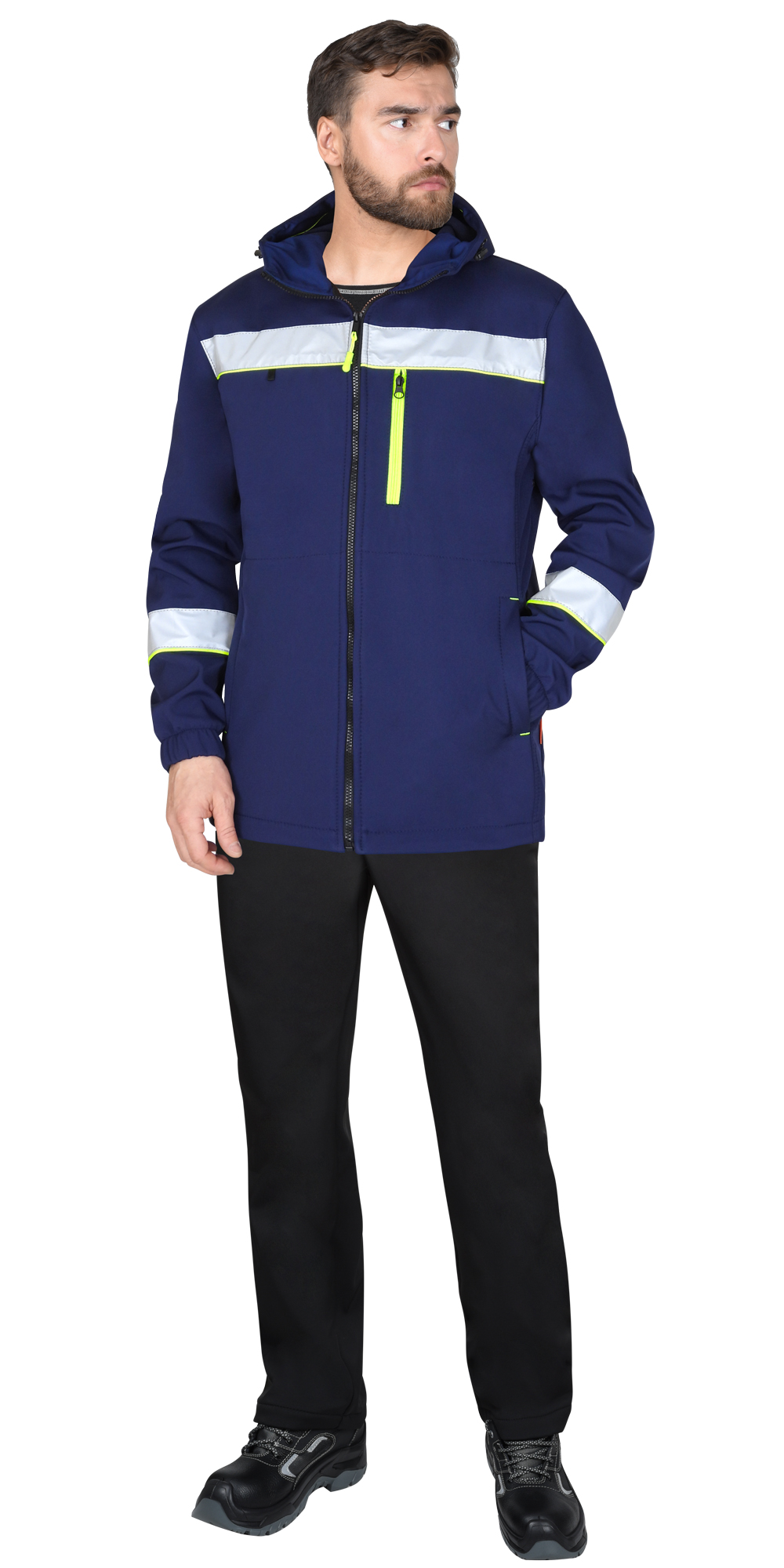 Куртка СИРИУС-АЗОВ синяя с СОП и лимонным кантом, софтшелл, пл 350 г/кв.м