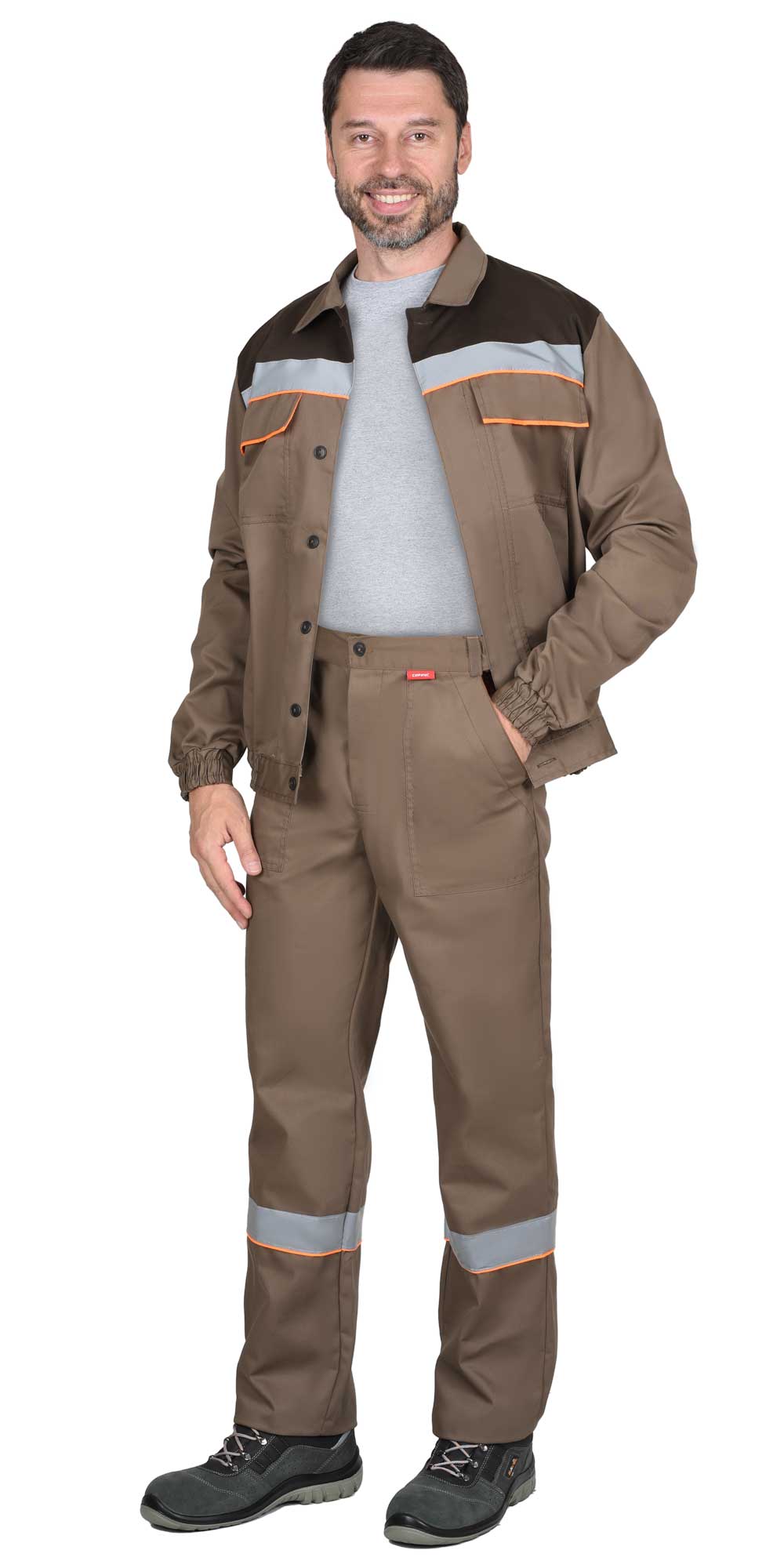 Полукомбинезон прямой с застёжкой спереди - гульфик с молнией, с отрезной грудкой, отрезной спинкой, с бретелями. В боковом шве полукомбинезона со стороны задней половинки вставка из эластичного материала для удобства использования. Полукомбинезон с карманами спереди, сзади и на боковых швах, с объёмными наколенниками из полиэфирной, плотной, непромокаемой ткани с верхним входом для амортизационного вкладыша. Бретели регулируются по длине.