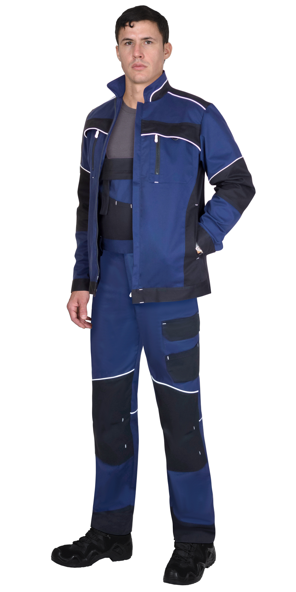 Костюм летний состоит из куртки, укороченной и полукомбинезона. В костюме предусмотрены светоотражающие элементы, для обеспечения безопасности в условиях пониженной видимости.