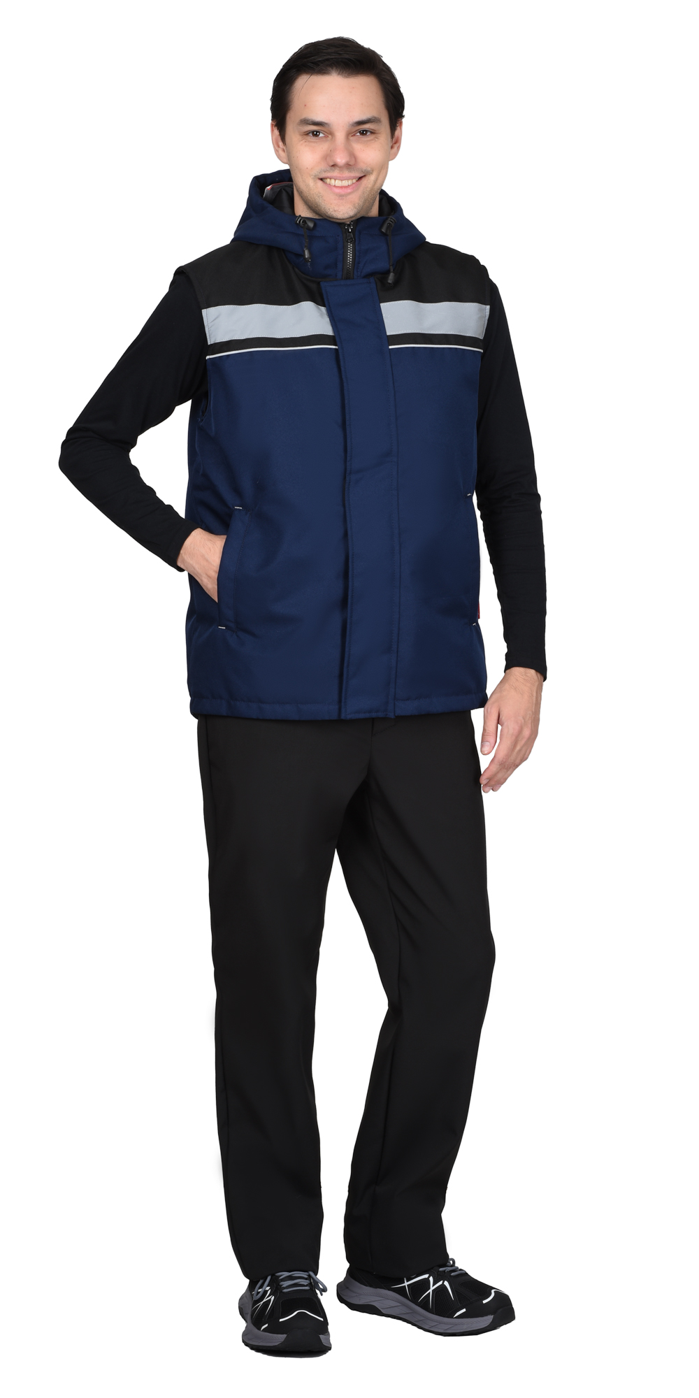 Материал верха основной: спаянное полотно из полиэфирной ткани с ВО, пл. 90 г/м2 с синтепоном пл. 150 г/м2 - 1 слой, (ромб 50*50 мм), состав 100% п/э, цвет: тёмно-синий.