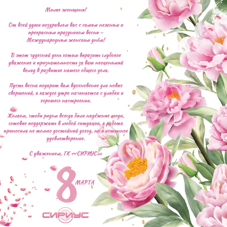 От всей души поздравлем вас с самым нежным и прекрасным праздником весны – Международным женским днём!