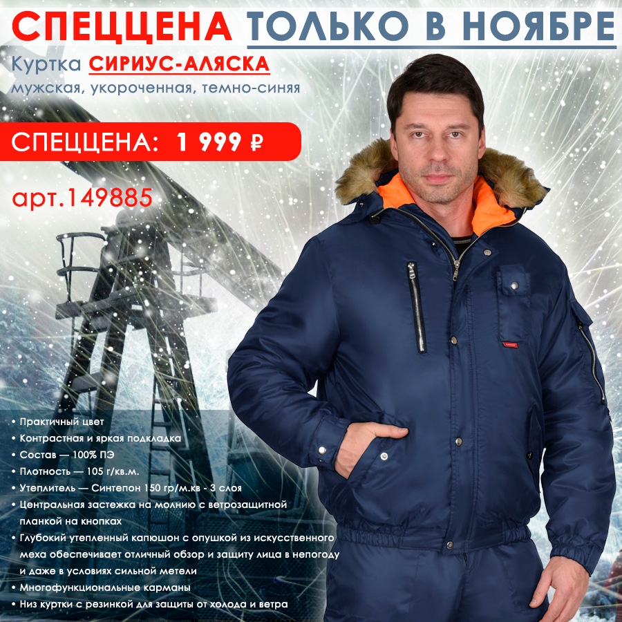 СПЕЦЦЕНА на Куртку СИРИУС-АЛЯСКА по арт.149885 в тёмно-синем цвете. ТОЛЬКО в НОЯБРЕ!