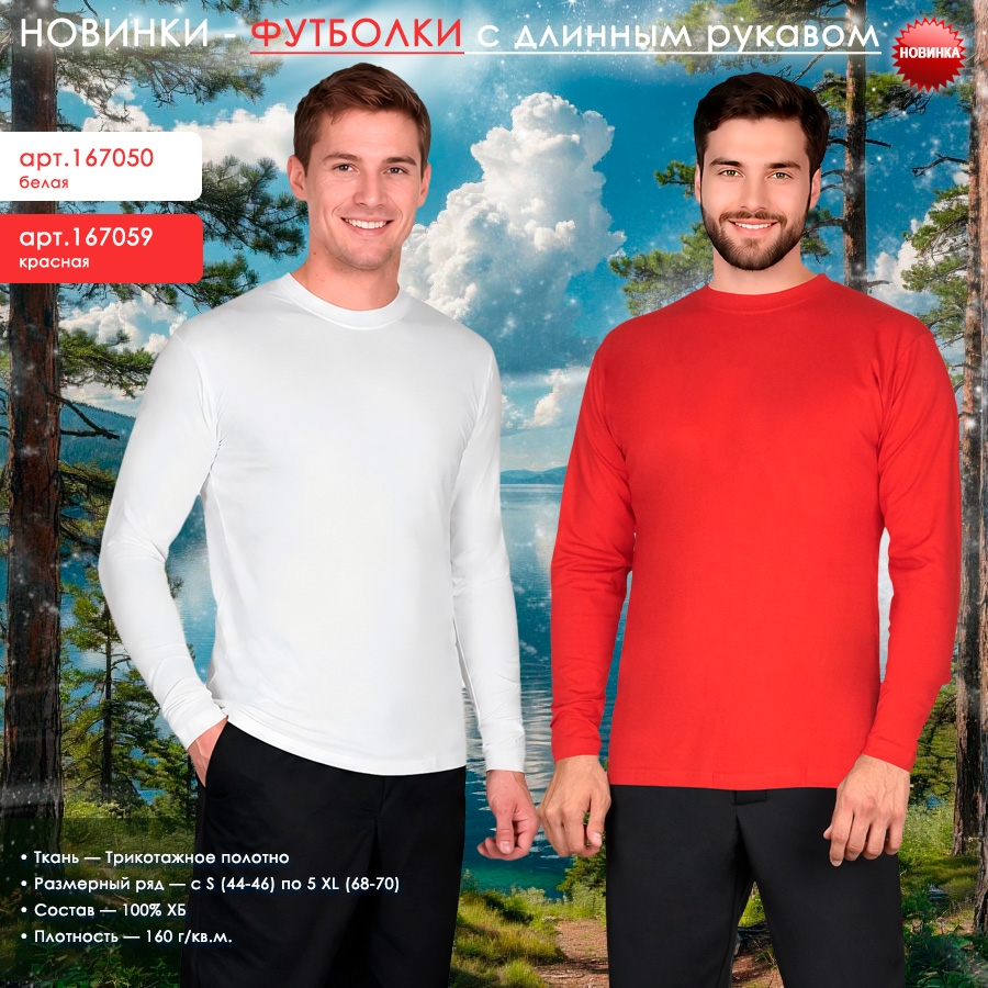 Уважаемые клиенты и партнеры!Представляем футболки с длинным рукавом в красном арт.167059 и белом арт.167050 цветах.