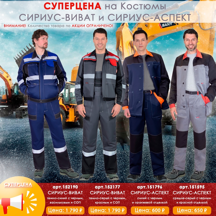 На летние мужские костюмы СИРИУС-АСПЕКТ и СИРИУС-ВИВАТ действует СУПЕРЦЕНА: