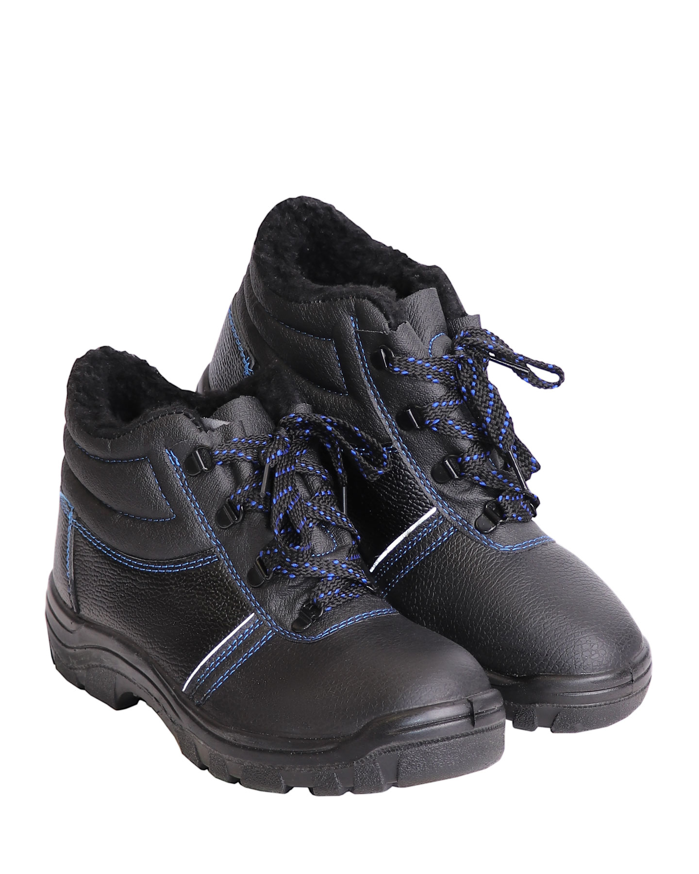Ботинки из кожи c мягким кантом и глухим клапаном для защиты ног от общих производственных загрязнений в зимний период. Подкладка и вкладная стелька изготовлены из искусственного меха. Шнуровка, проходящая через металлические петли, обеспечивает комфортную адаптивную посадку. Светоотражающие элементы повышают видимость работников в темное время суток и на неосвещенной территории. Однослойная маслобензостойкая полиуретановая подошва литьевого метода крепления имеет вставку в пяточной части подошвы, обладающую амортизационными свойствами и способную гасить ударные нагрузки при ходьбе. Глубина протектора ходового слоя обеспечивает хорошую сцепляемость с поверхностями и препятствует скольжению за счет рельефа протектора.