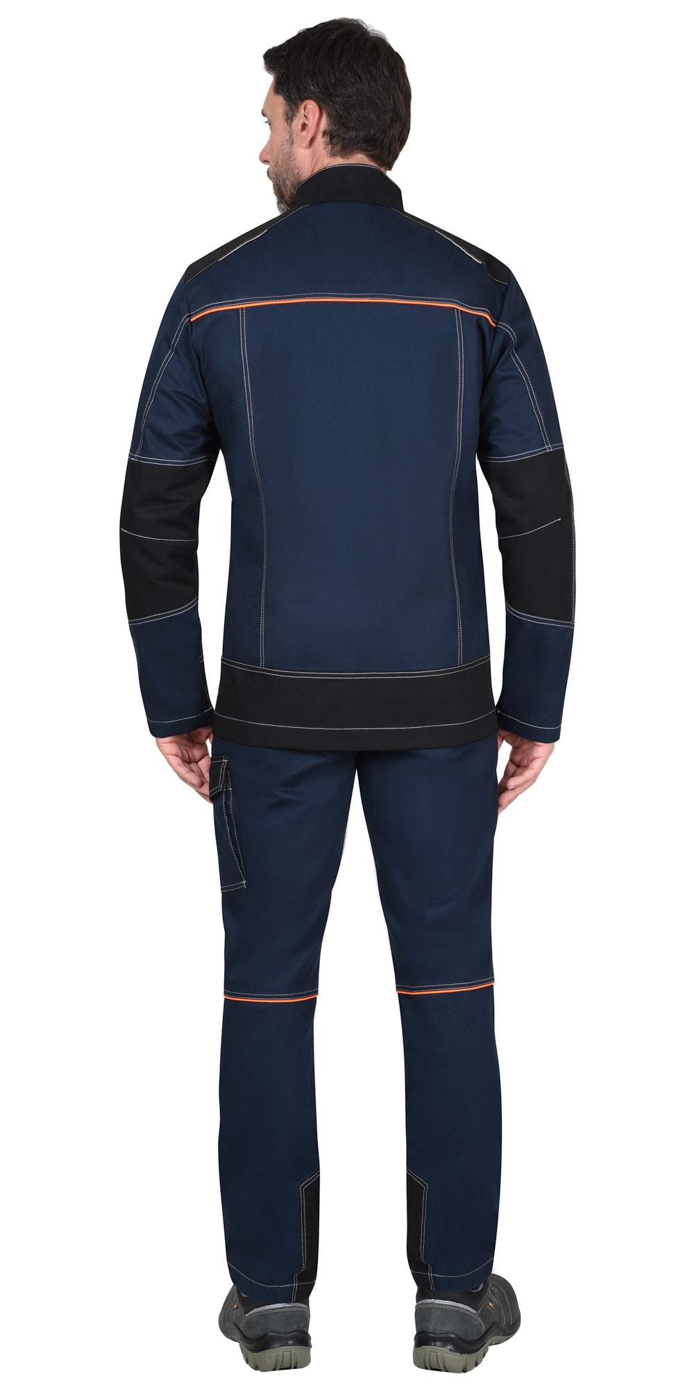 Куртка прямого силуэта, удлиненная, с воротником стойка, с центральной застёжкой на молнию, накрытую ветрозащитным клапаном с кнопками. Куртка с верхними карманами с молнией и нижними карманами с наклонным входом. Рукава с накладками в области локтя. Для обеспечения видимости при плохом освещении в куртке предусмотрены детали из светоотражающей полосы.