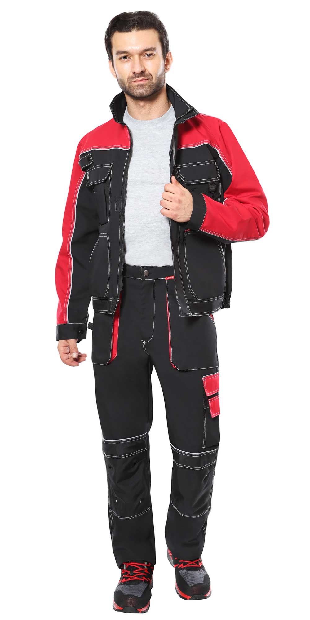 Брюки прямые с застёжкой спереди на гульфик с молнией, с отрезным поясом, с накладными карманами сзади и на левом боковом шве, с объёмными наколенниками из плотной, непромокаемой ткани с верхним входом для амортизационного вкладыша. В брюках предусмотрен светоотражающий кант.