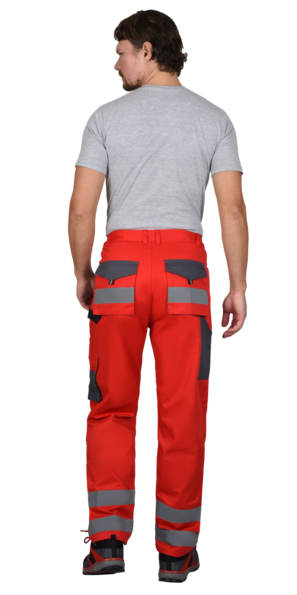 Брюки прямого кроя на поясе, с застёжкой гульфика на молнию, с накладными карманами спереди, сзади и на боковых швах. Брюки с усилительными накладками в области колен с нижним входом для амортизационного вкладыша.
