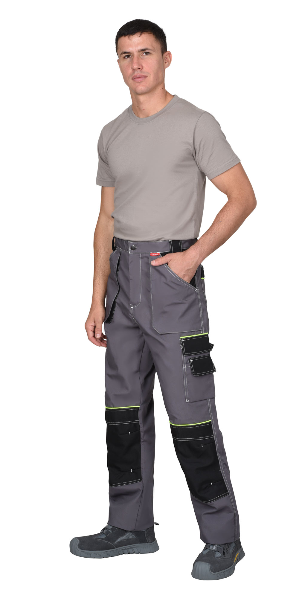 Полукомбинезон застежкой гульфика на тесьму - «молния», с застежкой в боковом шве на 3 джинсовые пуговицы, с фигурным карманом и клапаном на нагруднике застегивающийся на кнопку с логотипом «Сириус», с нижними накладными карманами с наклонным входом, с накладным фигурным карманом и клапаном застегивающийся на кнопку с логотипом «Сириус» на боковом шве, с задними накладными карманами с отлетным нижним краем и фигурными клапанами застегивающиеся на кнопку с логотипом «Сириус», с объемными наколенниками на передних половинках с возможностью вставить в них амортизационные вкладыши. С фигурной спинкой, по спинке вставлена резинка для лучшего прилегания.