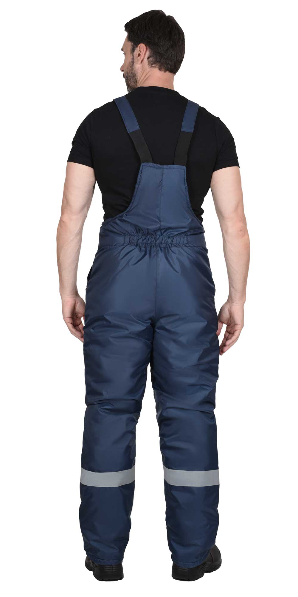 Полукомбинезон прямой, на утепленной подкладке, с центральной застёжкой на двухзамковую молнию R-вида, с накладными боковыми карманами, с резинкой по спинке, с регулируемыми бретелями. По низу полукомбинезона световозвращающая лента 50 мм для обеспечения сигнальной видимости.