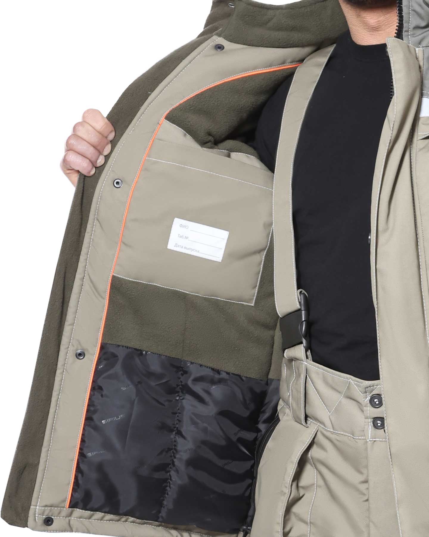 Утепленный мужской костюм «СИРИУС-ОЗОН» состоит из куртки и брюк.