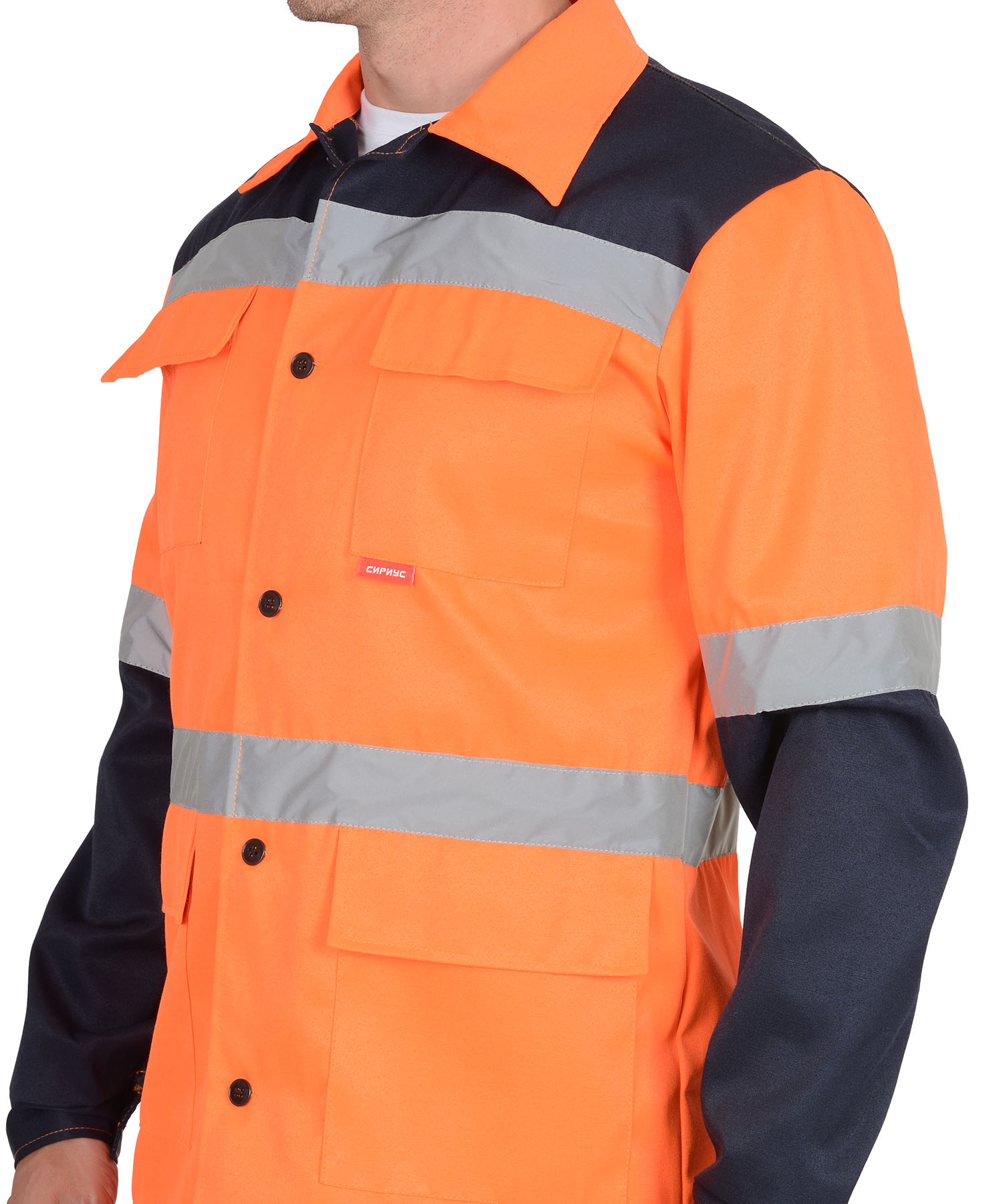 Костюм влагозащитный сигнальный с СОП SIRIUS Профи (225 гр/м2) оранжевый (ЧЗ)