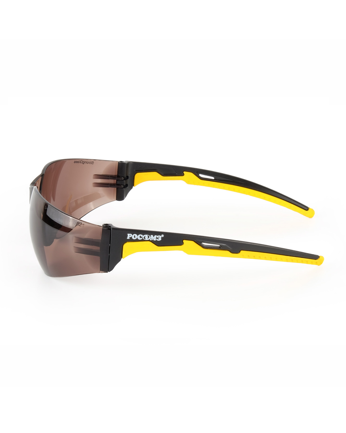 Защитное стекло из поликарбоната тёмно-коричневого цвета с водостойким двусторонним твердым и незапотевающим покрытием, не теряющим свои свойства при продолжительном использовании.