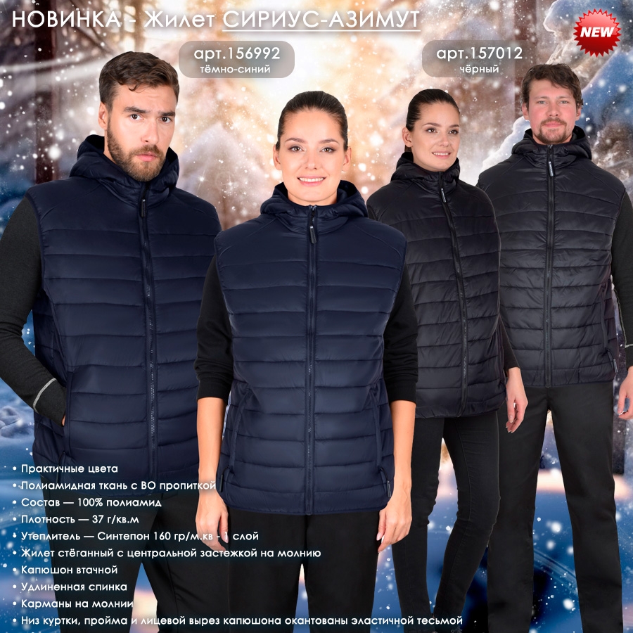 Представляем жилет СИРИУС-АЗИМУТ в тёмно-синем цвете по арт.156992 и чёрном арт.157012.