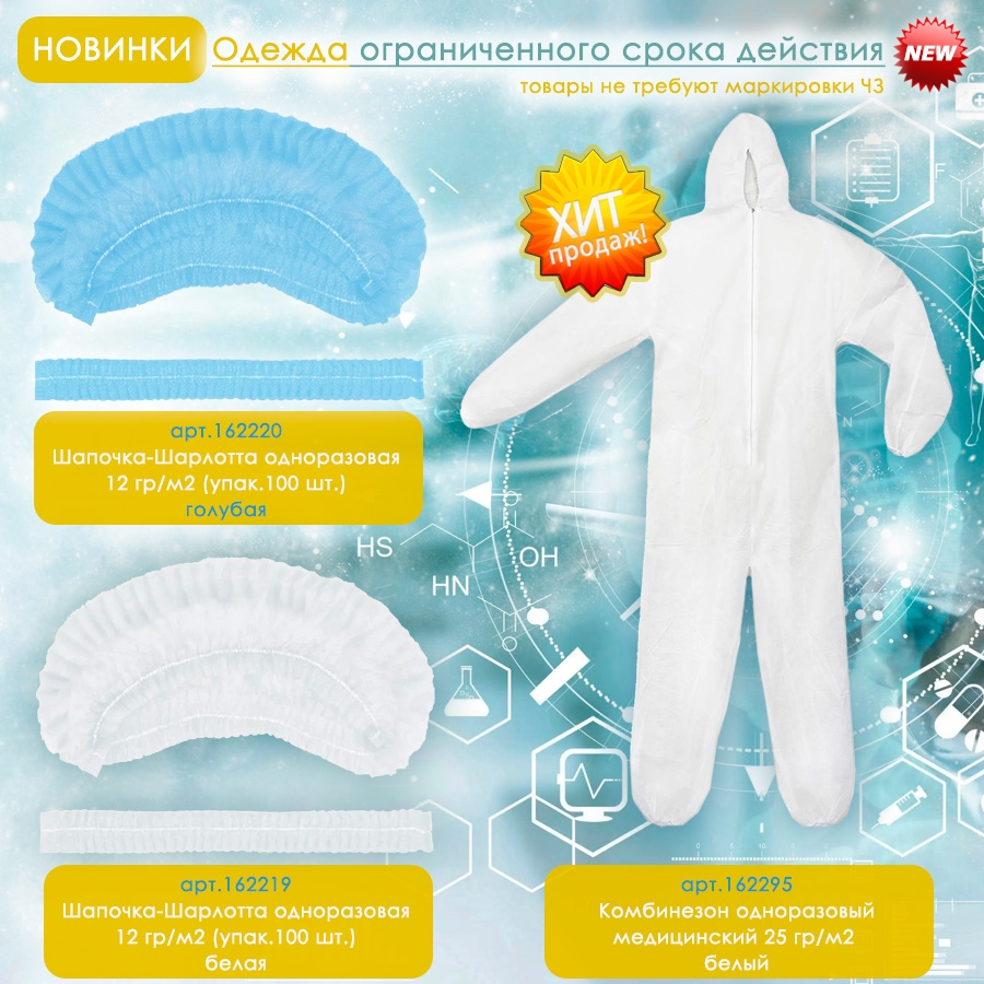 арт.162295 Комбинезон одноразовый медицинский, спанбонд 25 гр/м2 белый, маркировка ЧЗ не требуется, так как продается как медицинское изделие по регистрационному удостоверению.
