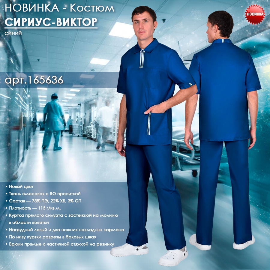 Новинка для представителей медицинской сферы и сферы услуг - Костюм СИРИУС-ВИКТОР по арт.165636 в синем цвете.