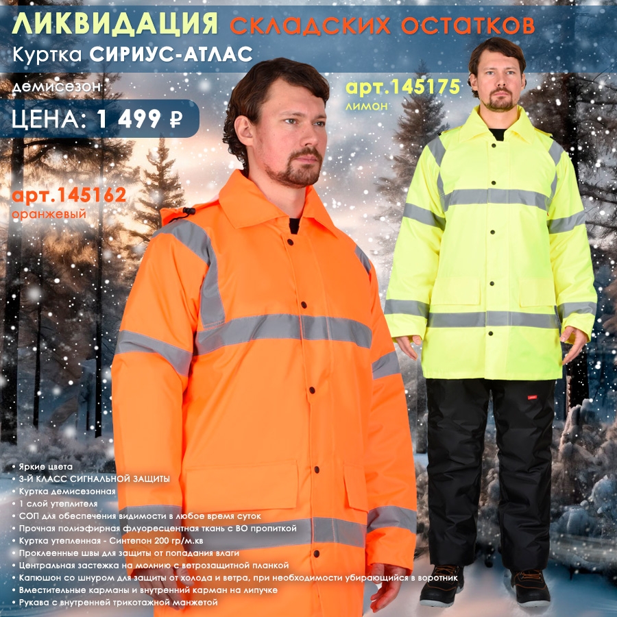 Сообщаем о Ликвидации мужской демисезонной куртки СИРИУС-АТЛАС. Внимание! Количество товара ограничено!