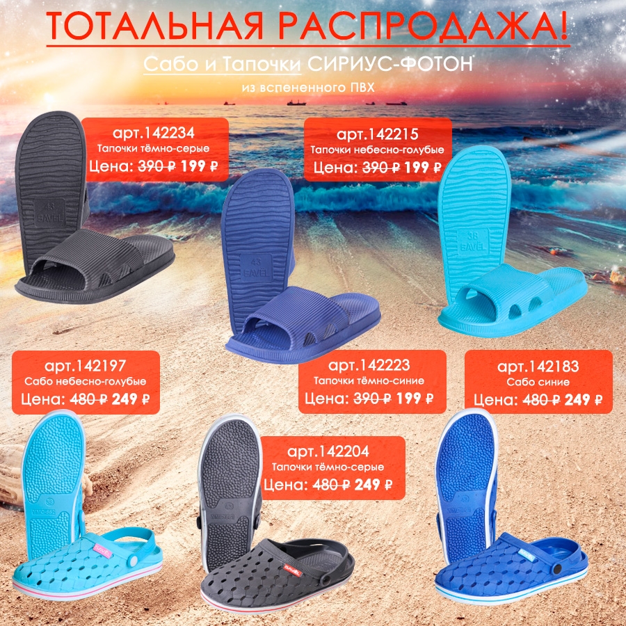 ТОТАЛЬНАЯ РАСПРОДАЖА на Сабо и Тапочки СИРИУС-ФОТОН из вспененного ПВХ.
