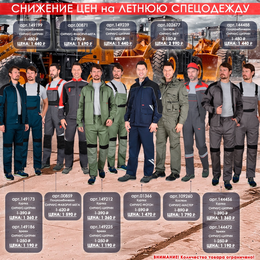 Объявляем о Снижении Цен на летнюю спецодежду. Внимание! Количество товара ограничено!